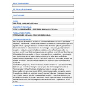 Projeto de Extensão II – Gestão de Segurança Privada – Programa de Inovação e Empreendedorismo