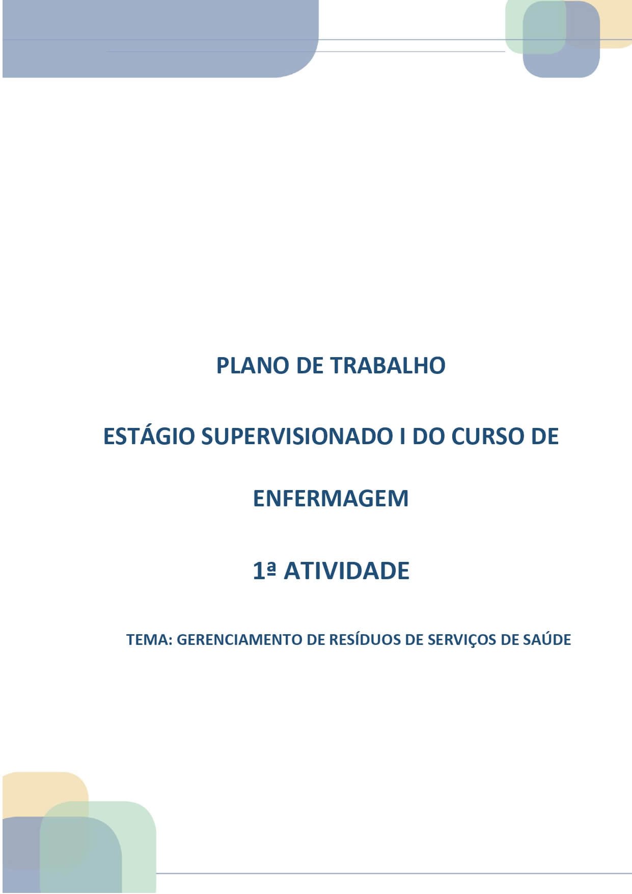 Plano de trabalho estágio supervisionado I Enfermagem Gerenciamento de resíduos de serviços de saúde