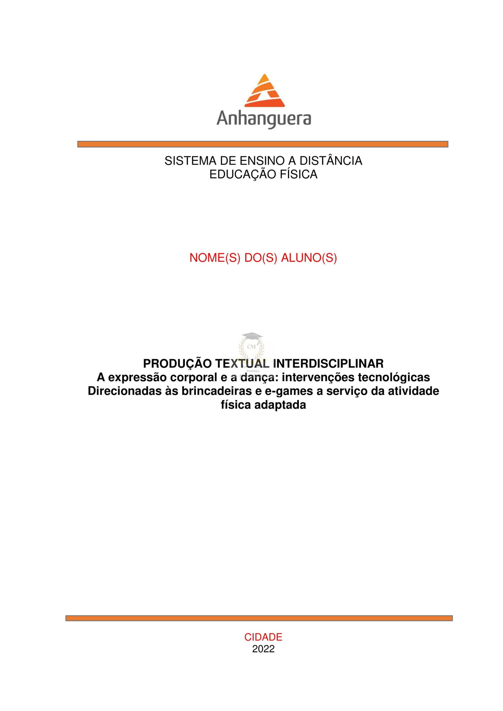 que apresenta a seguinte temática: A EXPRESSÃO CORPORAL E A DANÇA: INTERVENÇÕES