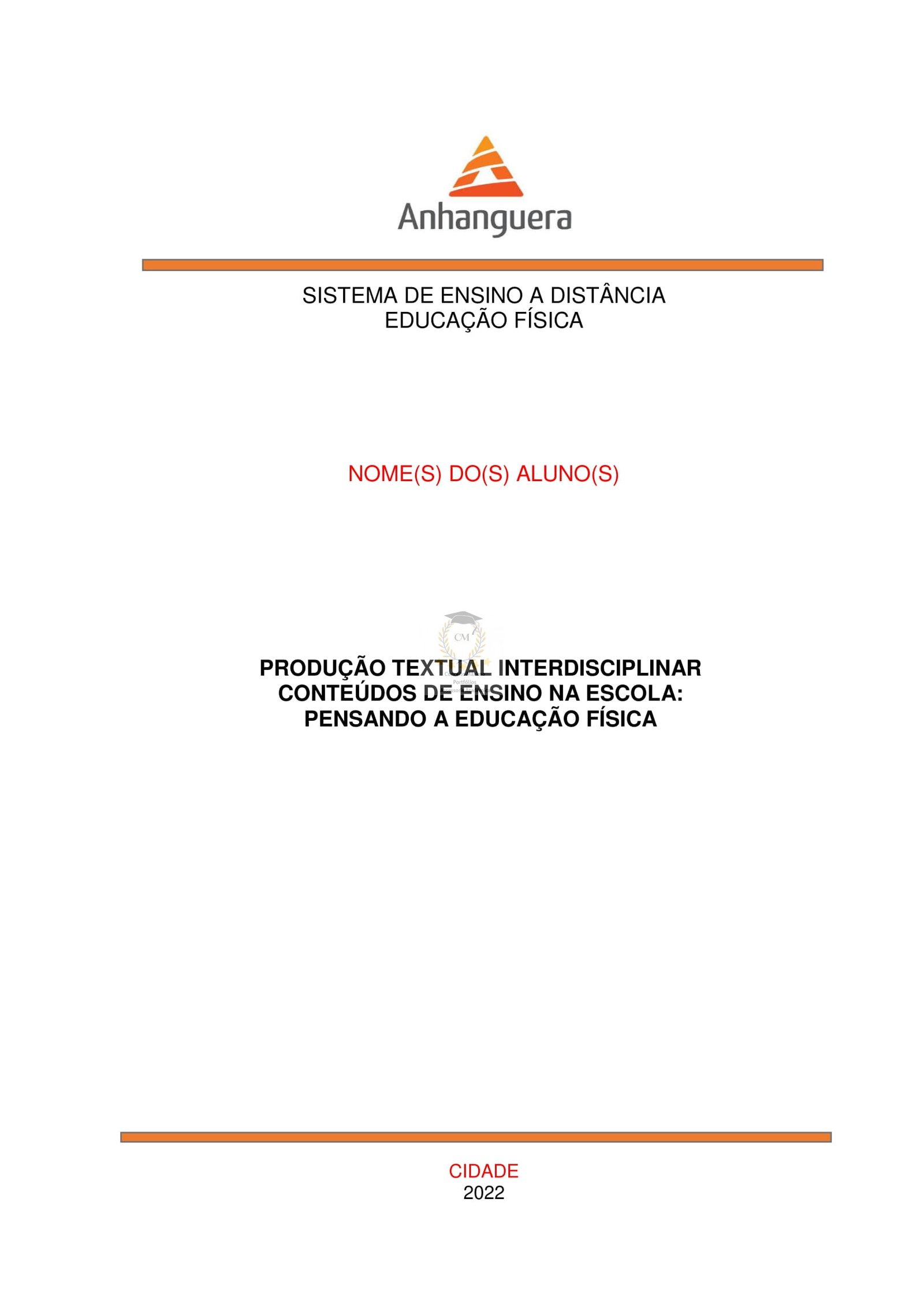 evidências científicas. Assim sendo, o tema central da proposta de Produção Textual Interdisciplinar em Grupo (PTG) será: “CONTEÚDOS DE ENSINO NA ESCOLA: PENSANDO A EDUCAÇÃO FÍSICA”.