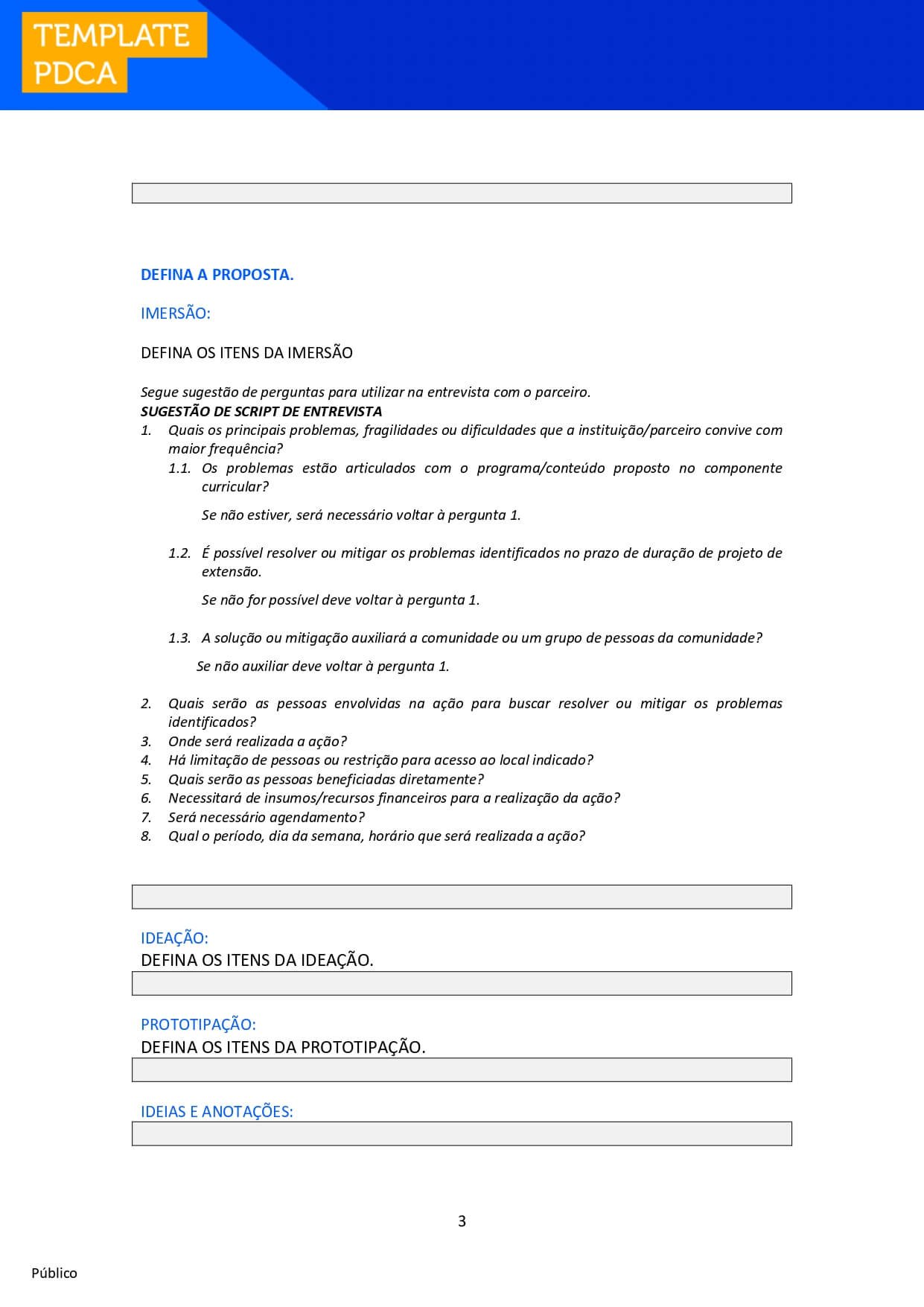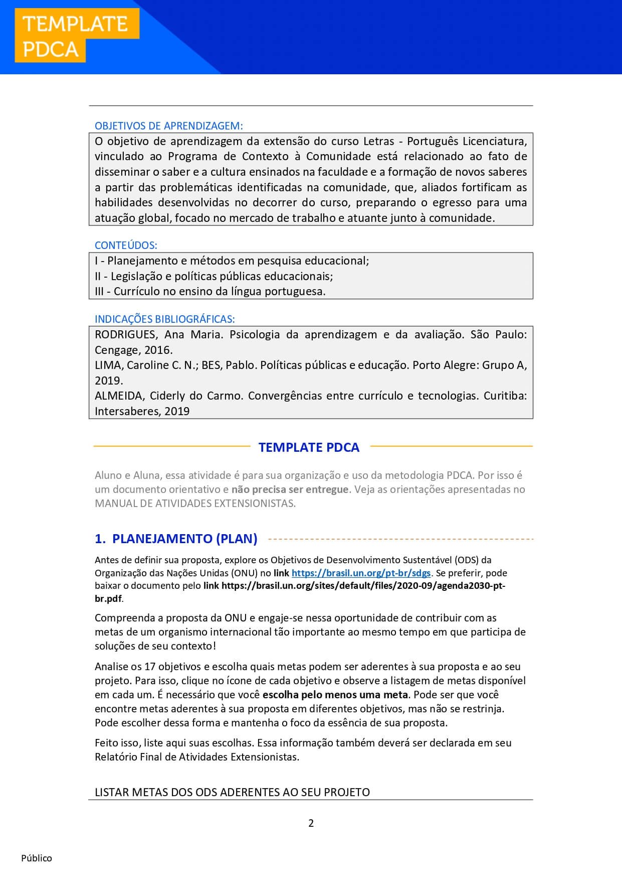 | Aluno e Aluna, essa atividade é para sua organização e uso da metodologia PDCA. Por isso é um documento orientativo e não precisa ser entregue. Veja as orientações apresentadas no MANUAL DE ATIVIDADES EXTENSIONISTAS. | ||||