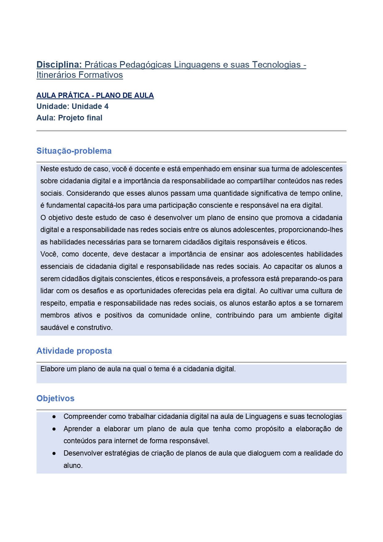 O objetivo deste estudo de caso é desenvolver um plano de ensino que promova a cidadania