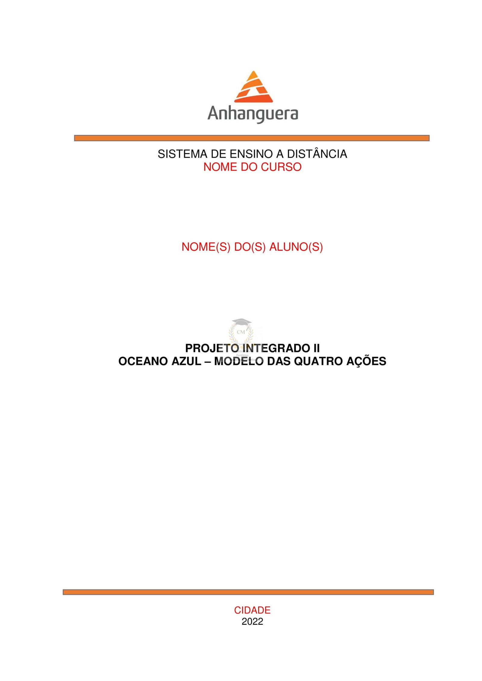 Projeto integrado II Oceano azul – Modelo das quatro ações
