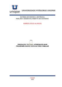 Projeto Integrado – Programa sobre Agricultura Familiar